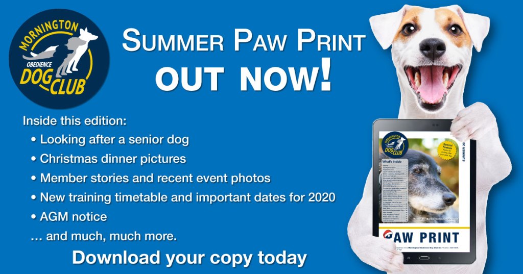 I hope that you have all had fun at today’s MODC Christmas Funday. Now that awards and prizes have been presented it’s okay to send out the Summer 2019 edition of Pawprint. Congratulations to all the handlers that won a prize. Pawprint can be viewed and downloaded from this link. Thanks to Tom for another enjoyable read.
